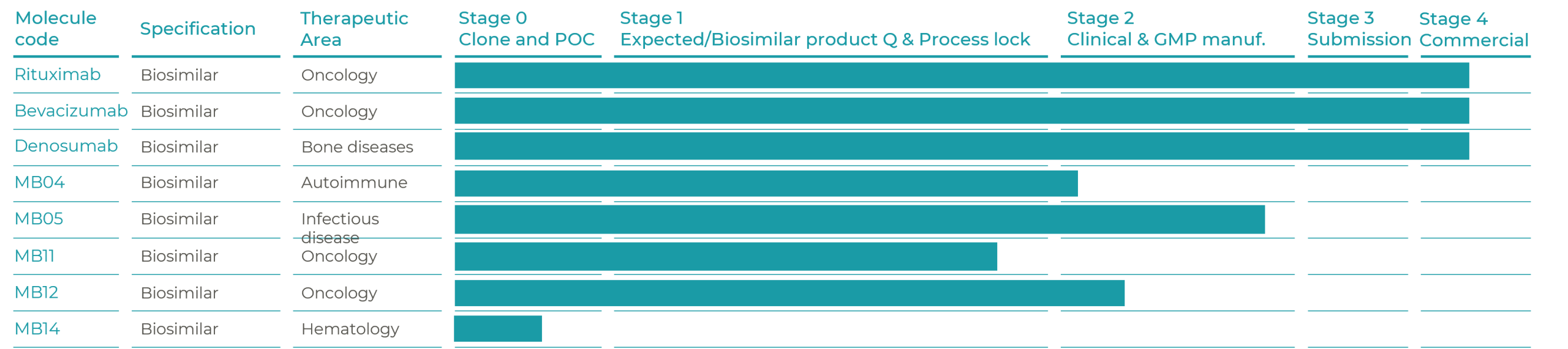 We are specialists in biologics: we have developed and commercialized two biosimilar medicines for oncology, available to thousands of patients across the globe via our B2B partnerships in worldwide markets: MB01 rituximab biosimilar and MB02 bevacizumab biosimilar, since 2014 and 2016 respectively. Now we have a highly attractive pipeline of biosimilar and innovative biopharmaceuticals targeting areas of oncology, hematology, osteoporosis and pediatrics.